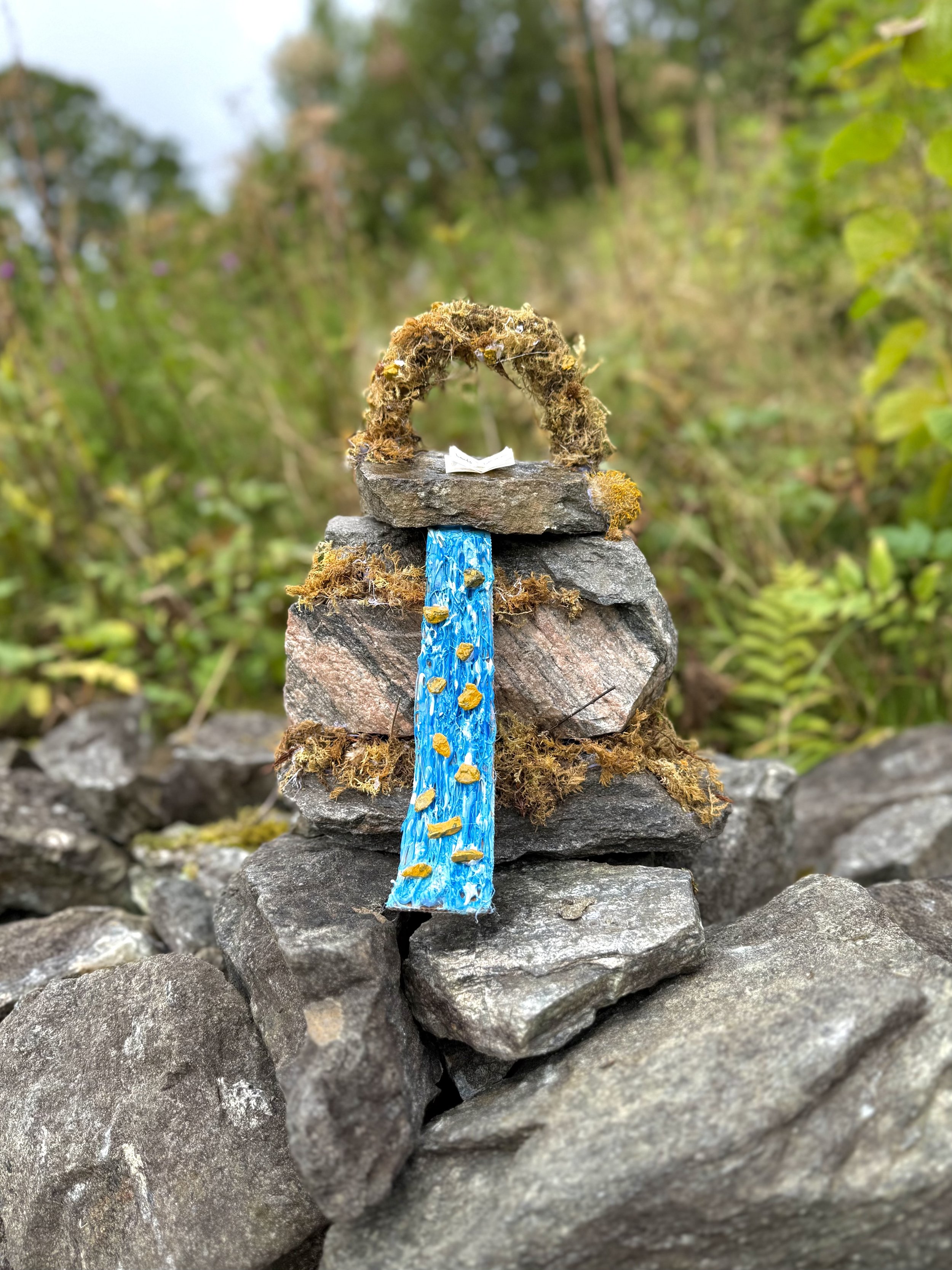Gruppa har laget en varde av stein i ulik størrelse. Steinene representerer menneskene som har vært her – ulike steiner i varden representerer at det var forskjellige grupper. Fattige nederst og rike på toppen. Toppen er finere enn bunnen bl.a. fordi noen rike kunne lese og skrive – derfor har gruppa plassert en bok (landsloven) på toppen. Buen helt øverst på toppen symboliserer harmoni for de rike. Fossen representerer overforbruk og derfor kommer vannet ut på toppen. Det er lagt mose på steinene for å vise at det er et tydelig skille mellom de ulike klassene i samfunnet.