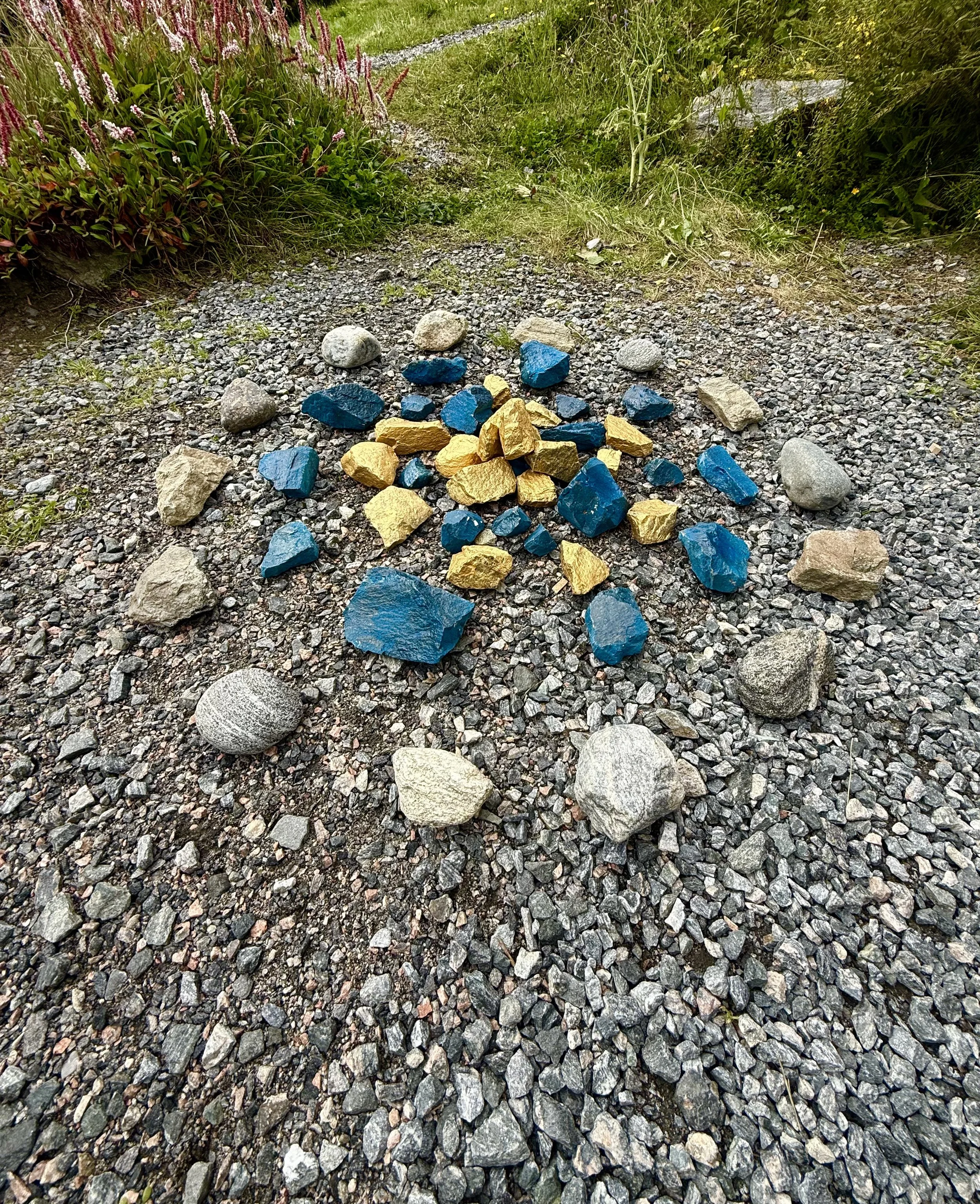 Gruppa har laget Land Art med stein. Steinene er plukket fra skoleplassen på Fauskanger. Noen er malt i gull og blått, resten har fått beholde sin naturlige gråfarge. Gruppa formet en ramme av grå steiner og fylte den med de fargede steinene. Gull og blått fordi det var kostbare farger – forbeholdt de rike. Bare de aller rikeste hadde råd til steinhus, eller kunne hugge i stein og bygge og gi bort kirker og klostre. Blått og gull symboliserer makt, mens de grå, vanlige steinene representerer bøndene og resten av folket, som måtte betale skatt til de rike.